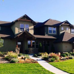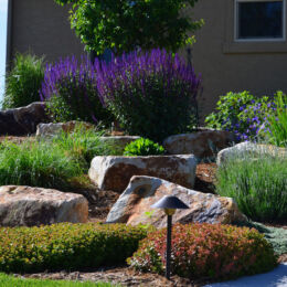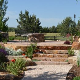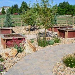 This custom home, built on an expansive lot with gorgeous mountain views was designed with family time and outdoor living in mind. A flagstone patio large enough to fit the whole family and a custom fire pit with automatic ignition are the focal point of the backyard. A water feature runs through the backyard adjacent to the patio to provide a tranquil and calming space. A vegetable garden with custom raised boxes and a fountain provide fresh vegetables throughout the growing season. Plantings throughout the landscape soften the hardscapes and provide four seasons of interest. Landscape lighting completes the project for evening enjoyment.